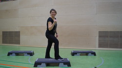 Step-Aerobic: die Übungen werden mit Hilfe des Step-Bretts ausgeführt, ebenfalls als kleine Choreographie.